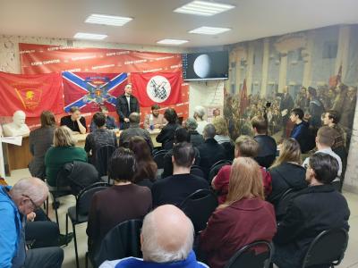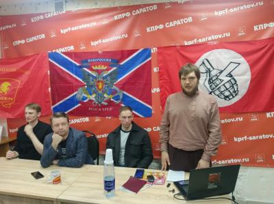 Представитель Саратовского горкома КПРФ Андрей БАЖЕНОВ осветил участие коммунистов в период народного ополчения, фрагменты из истории помощи КПРФ и ЛКСМ РФ Республикам Донбасса ещё до того момента, как это стало популярно у нынешней власти, а также рассказал о материалах КПРФ, в которых поднимаются вопросы патриотизма, Русской культуры и Русского мира.