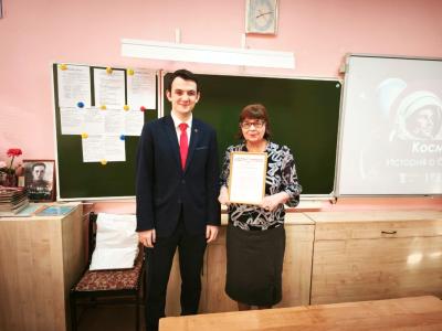 В начале мероприятий член Самарского горкома ЛКСМ РФ Кирилл Коновалов вручил благодарственное письмо от заместителя председателя Самарской Губернской Думы Алексея Лескина учителю истории Н.А. Махмутовой за вклад в патриотическое воспитание молодежи.