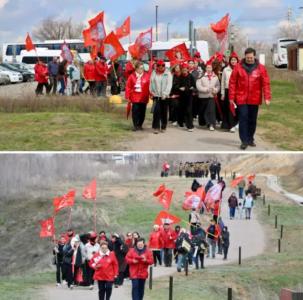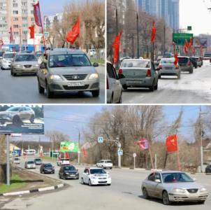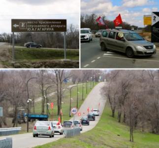 Вначале провели автопробег, который состоялся из центральной части города Энгельса. Автомобили, украшенные копиями Знамени Победы, флагами СССР, символикой КПРФ и ЛКСМ, флагами с фотографиями Гагарина Ю.А. направились к месту приземления Гагарина.