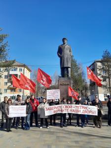 Сегодня по инициативе жителей нескольких домов на Ленинградском проспекте и улице Воронина в Архангельске прошел пикет против строительства ЖК «Тетрис» на месте, где раньше был сквер, а земельный участок был передан под строительство спортивного объекта. Архангельский городской комитет КПРФ оказал помощь в решении организационных вопросов пикетирования.