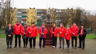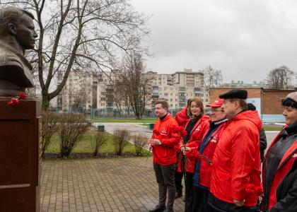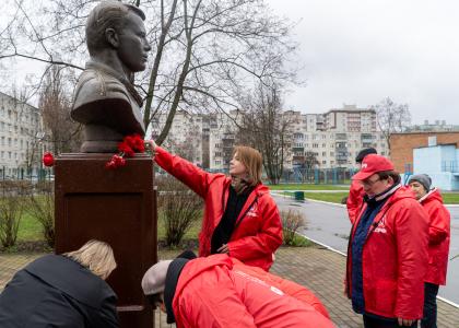 Группа активистов партии прибыла к школе № 50, где установлен памятник Ю.А. Гагарину.
