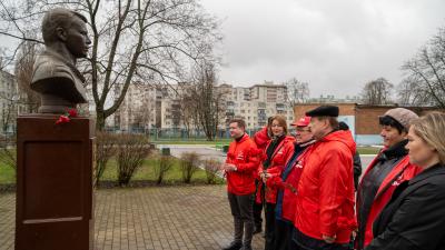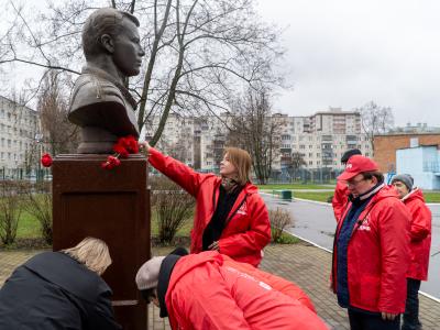Группа активистов партии прибыла к школе № 50, где установлен памятник Ю.А. Гагарину.