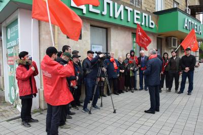 Колонна автомобилей с красными флагами и символикой КПРФ проследовала по маршруту Махачкала — Каспийск — Махачкала, проехав по центральным и оживлённым улицам обоих городов.