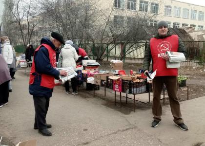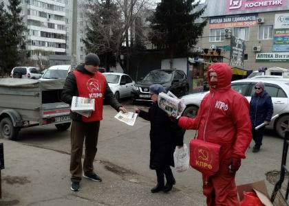 В этот же день провёл раздачу агитматериала и Советский райком КПРФ. Традиционную красную палатку возле ДК Малунцева установить (в который раз!) не удалось — акцию протеста администрация не согласовала. Предложения провести пикет на задворках Нефтов, напротив тюрьмы, советчане считают оскорбительными и подали уже заявки на три (!) пикета на текущие выходные. Грустная шутка о том, что добиться согласия администрации на проведение пикета и митинга без отписок и отказов сложнее, чем покорить космос, была на этих выходных в ходу у советчан.
