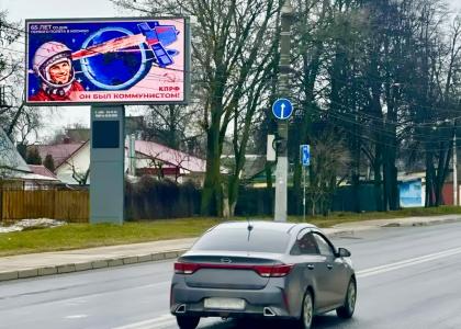 Нижегородское региональное отделение КПРФ проводит патриотическую акцию с размещением рекламных 20 щитов в Нижнем Новгороде, на которых изображен первый космонавт планеты Юрий Алексеевич Гагарин. Акция приурочена ко Дню космонавтики и стала своеобразным поздравлением нижегородцев с историческим юбилеем. На щитах размещена надпись: «65 лет со дня первого полета в космос!», а также важное напоминание о том, что Юрий Гагарин был Коммунистом.