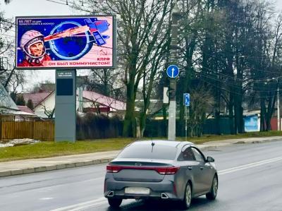 Ярким дополнением к проведенным мероприятиям стала масштабная визуальная кампания. Под девизом «65 лет первого полета в космос — триумф Советского народа»: билборды с Юрием Гагариным украшают Нижний Новгород. Нижегородское региональное отделение КПРФ разместило 20 праздничных рекламных щитов по всему городу. Эта патриотическая акция стала своеобразным общегородским поздравлением нижегородцев с историческим юбилеем и наглядным напоминанием о том, что первый космонавт планеты был убежденным Коммунистом.