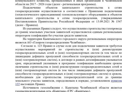 Так же по семи договорам обязательства не исполнены до настоящего времени, в связи с чем, прокурором города Кыштым внесено представление, которое в настоящее время находится на рассмотрении. Двум заявителям даны разъяснения о необходимости обращения с заявками на технологическое присоединение в рамках догазификации. В настоящее время заявки находятся на рассмотрении.