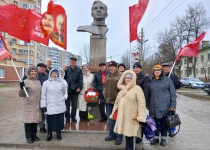 Коммунисты города Королёва, верные своим идеалам и памяти о великом прошлом, собрались у монумента основоположнику космонавтики, Сергею Павловичу Королёву