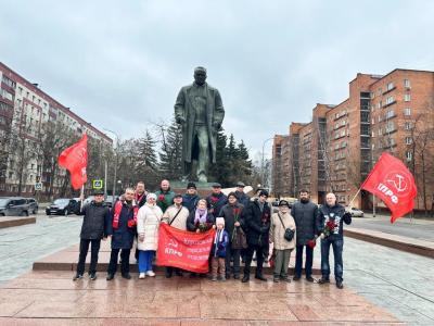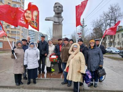 Коммунисты города Королёва, верные своим идеалам и памяти о великом прошлом, собрались у монумента основоположнику космонавтики, Сергею Павловичу Королёву