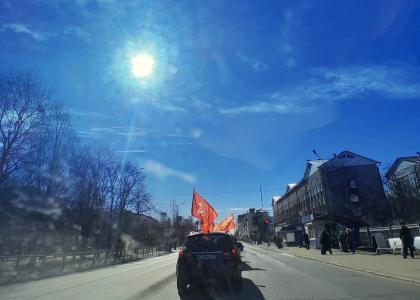 В автопробеге приняли участие коммунисты Архангельска. Машины проследовали по всем центральным улицам города, а жители радостно реагировали на движение автомобилей с красными флагами.
