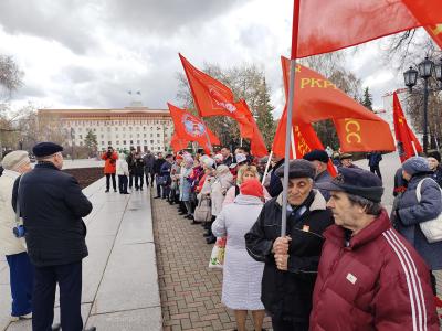 Сегодня на Центральной площади областной столицы прошла памятная акция, посвященная 156-летию со дня рождения основателя Советского государства Владимира Ильича Ленина. У подножия самого большого в России бронзового памятника вождю мирового пролетариата собрались представители регионального отделения КПРФ, активисты движений «Надежда России», «Дети войны», «Русский Лад», а также члены РКРП(б)-КПСС.
