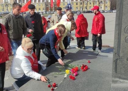 Коммунисты Великого Новгорода и сторонники партии сегодня, 22 апреля, в 156-й День рождения Владимира Ильича Ленина возложили цветы к памятнику Вождю мирового пролетариата на площади Победы.