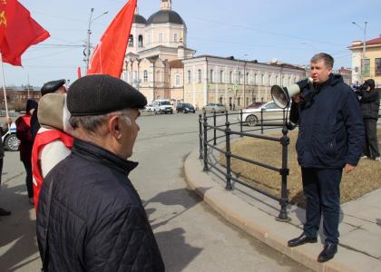 Перед собравшимися выступили Первый секретарь обкома КПРФ А.Г. Петров и секретарь обкома, депутат Думы города Томска В.Т. Чолахян. Андрей Геннадьевич напомнил о значении личности Ленина для мирового коммунистического движения, призвал учиться у великого человека, продолжать его дело, чтобы возродить социализм в нашей стране. Андрей Петров: «До сих пор этого человека боятся. Боится и современная власть. Нам ставят палки в колёса, чтобы помешать провести даже возложение цветов к памятнику. Сейчас нам пытаются запретить проведение Первомая на территории города Томска. Но мы должны бороться и обязательно победим! С праздником, товарищи!».