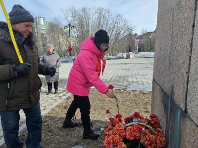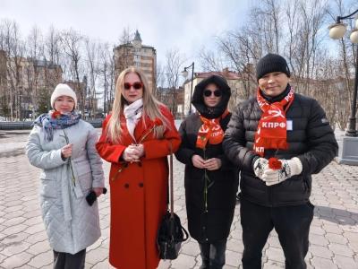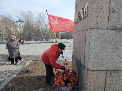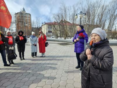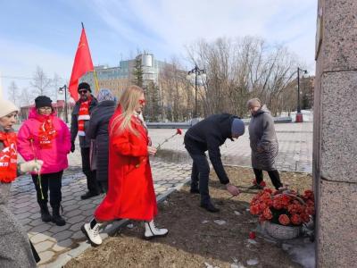 Коммунисты возложили алые гвоздики к подножию памятника В.И. Ленина. Была принята Резолюция митинга.
