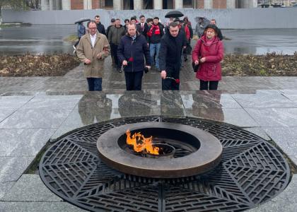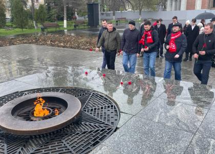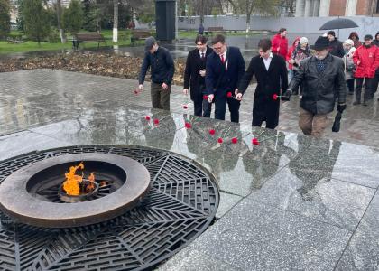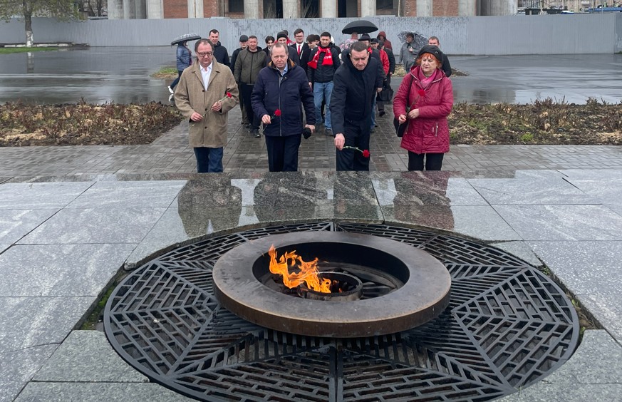 В начале мероприятия саратовские коммунисты и комсомольцы возложили цветы к Вечному огню у памятника Борцам социалистической революции 1917 года, что в сквере театра оперы и балета им. Н.Г. Чернышевского.