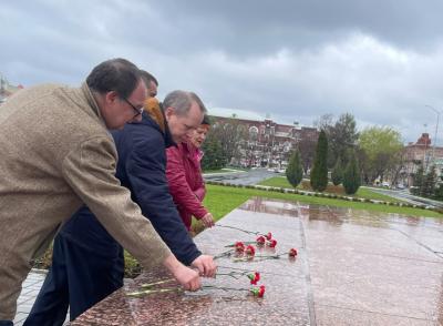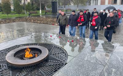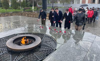 В начале мероприятия саратовские коммунисты и комсомольцы возложили цветы к Вечному огню у памятника Борцам социалистической революции 1917 года, что в сквере театра оперы и балета им. Н.Г. Чернышевского.