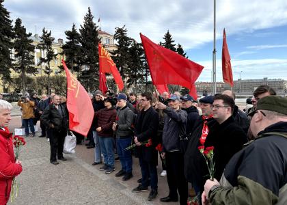 22 апреля, в день рождения великого революционера и основателя Советского Союза В.И. Ленина у самого известного в мире памятника Ильичу перед Финляндским вокзалом собрались десятки людей с красными флагами. Собрались не только с привычными полотнищами государственного флага Союза, но и с флагами РСФСР. Это встреча с депутатами Законодательного Собрания Санкт-Петербурга от КПРФ – первым секретарем Санкт-Петербургского горкома, членом Президиума ЦК КПРФ Романом Кононенко и секретарем горкома, членом ЦКРК партии Вячеславом Бороденчиком. Парламентарии говорили о не просто всероссийском, а всемирном значении действий Ленина, о том, как его опыт влияет на нас и по сей день. От имени красной партийной молодежи добавила свое слово комсомолка Арина Бегун, которая заявила: «Ленин жил, жив, будет жить!».