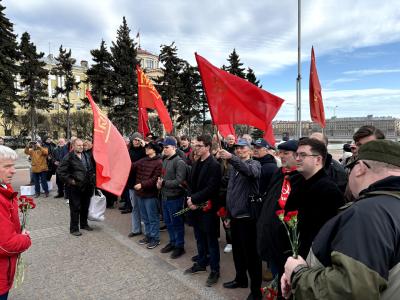 22 апреля, в день рождения великого революционера и основателя Советского Союза В.И. Ленина у самого известного в мире памятника Ильичу перед Финляндским вокзалом собрались десятки людей с красными флагами. Собрались не только с привычными полотнищами государственного флага Союза, но и с флагами РСФСР. Это встреча с депутатами Законодательного Собрания Санкт-Петербурга от КПРФ – первым секретарем Санкт-Петербургского горкома, членом Президиума ЦК КПРФ Романом Кононенко и секретарем горкома, членом ЦКРК партии Вячеславом Бороденчиком. Парламентарии говорили о не просто всероссийском, а всемирном значении действий Ленина, о том, как его опыт влияет на нас и по сей день. От имени красной партийной молодежи добавила свое слово комсомолка Арина Бегун, которая заявила: «Ленин жил, жив, будет жить!».
