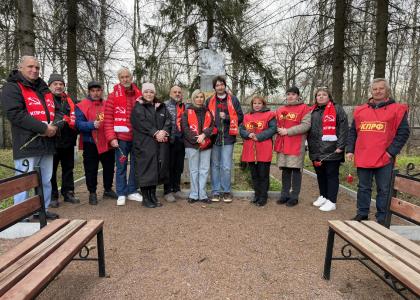 Коммунисты Петергофско-Стрельнинского местного отделения провели возложение цветов к памятнику Ленину в Стрельне. Выступали секретарь горкома КПРФ, первый секретарь райкома Светлана Румянцева и коммунист Сергей Алексеев. Также вступившим в ряды партии товарищам были вручены партийные билеты. Напомним, что памятник и территория, к нему прилегающая, были восстановлены усилиями группы коммунистов во главе с Андреем Смирновым.