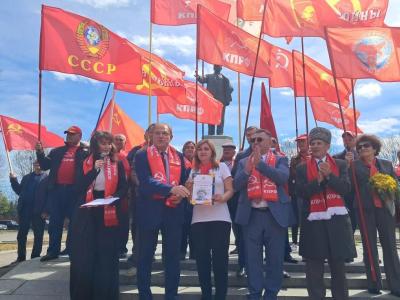 Под красными стягами КПРФ и союзных организаций собрались на главной площади республики у памятника вождю мирового пролетариата людей разных поколений – коммунисты, представляющие все местные отделения КПРФ Кабардино-Балкарии, комсомольцы, представители региональных отделений общественных организаций «Дети войны» и «Надежда России» и просто те, которым дорого имя Ленина.
