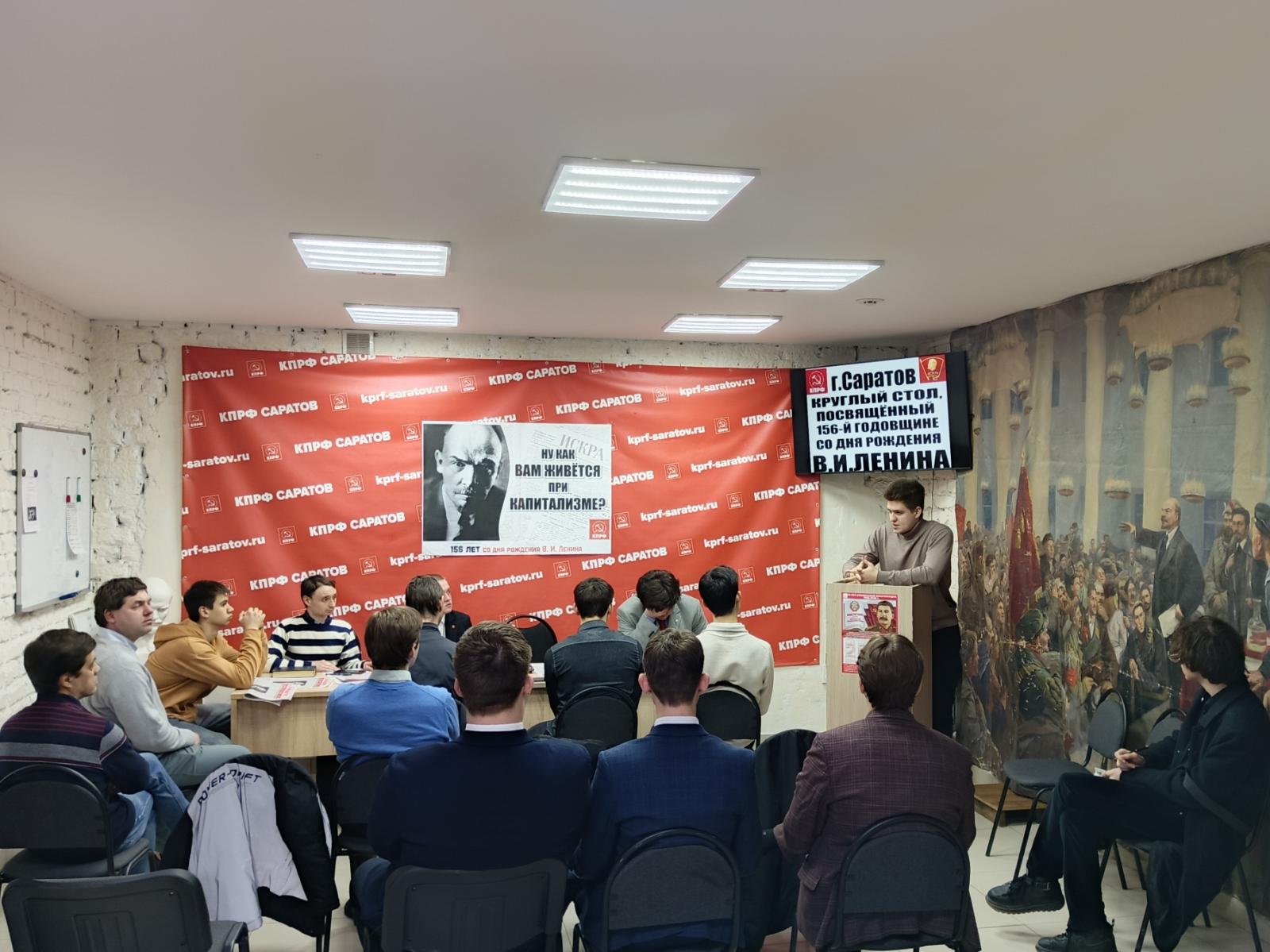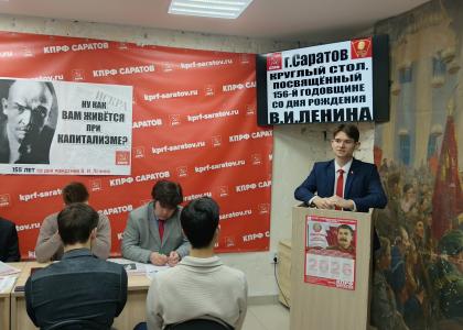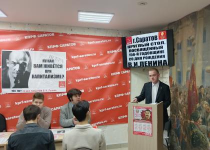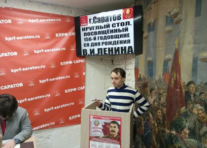 Вначале мероприятия ведущий круглого стола, руководитель Саратовского горкома комсомола Алексей Михалкин презентовал новый выпуск газеты Саратовского обкома КПРФ «За народовластие», посвящённый дню рождения вождя мирового пролетариата, в котором размещены статьи саратовских коммунистов и комсомольцев, а также автора телеграм-канала «С красной строки» Александра Рогожкина, о жизнедеятельности, наследии и современном значении основателя первого в мире советского государства.