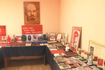 В кабинете Якутского горкома КПРФ устроили книжную выставку и выставку памятных значков (коллекционер Ольга Чахова), посвященные ленинской тематике.