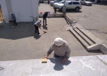 За два часа активисты убрали прилегающую территорию и помыли постамент памятника В.И. Ленину.