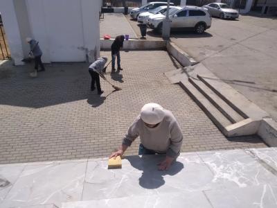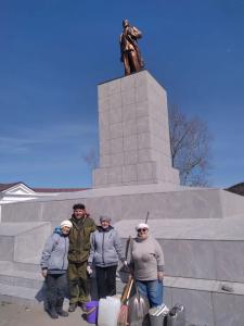 За два часа активисты убрали прилегающую территорию и помыли постамент памятника В.И. Ленину.