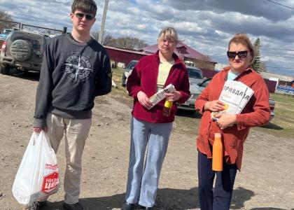 Во главе с секретарём Нововаршавского райкома КПРФ Анной Викторовной Гимазовой агитбригада все выходные работала в райцентре. Цель - донести газету "Правда" в каждый дом. Наши товарищи общались с местными жителями, напоминали, что в сентябре состоятся выборы в Госдуму и Заксобрание области.