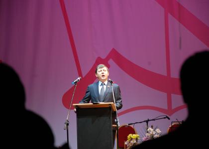 На сцену поднялся однокурсник Г.А. Зюганова доктор педагогических наук, профессор В.Д Селютин. Он рассказал о студенческих годах кандидата в президенты. О самой прекрасной поре – юности, когда, в сущности, и закладываются в характере человека те принципы, которые он потом отстаивает всю свою жизнь.