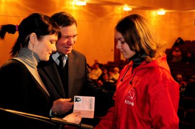 Из рук секретаря обкома партии, депутата областной Думы Б.С. Павленко и первого секретаря горкома, депутата городского Собрания В.И. Тарасова под аплодисменты собравшихся пять человек получили партийные билеты и ещё трое – комсомольские (на фото).