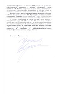 В нынешней избирательной кампании не обеспечено равное по времени освещение предвыборной деятельности кандидатов в Президенты. Игнорируется предусмотренный российским законодательством для информационных телерадиопрограмм запрет предпочтения в информационно-политическом телерадиоэфире какому-либо кандидату, избирательному объединению. Кандидат от партии “Единая Россия” В.В.Путин находится в абсолютно привилегированном положении по сравнению с другими кандидатами, участвующими в президентских выборах.