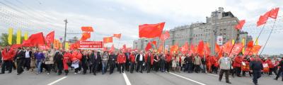 Первомайское шествие, организованное Московским городским отделением КПРФ, началось от Октябрьской (Калужской) площади.