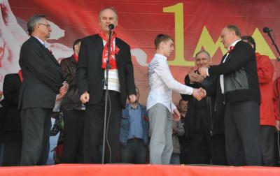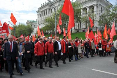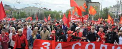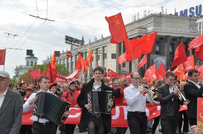 У многих из них плакаты с традиционными лозунгами, в частности, "Мир, труд, май!", "Социализм победит!", "Пролетарии всех стран, соединяйтесь!", а кроме того, "Выборы - не лохотрон", также портреты Ленина и Сталина.