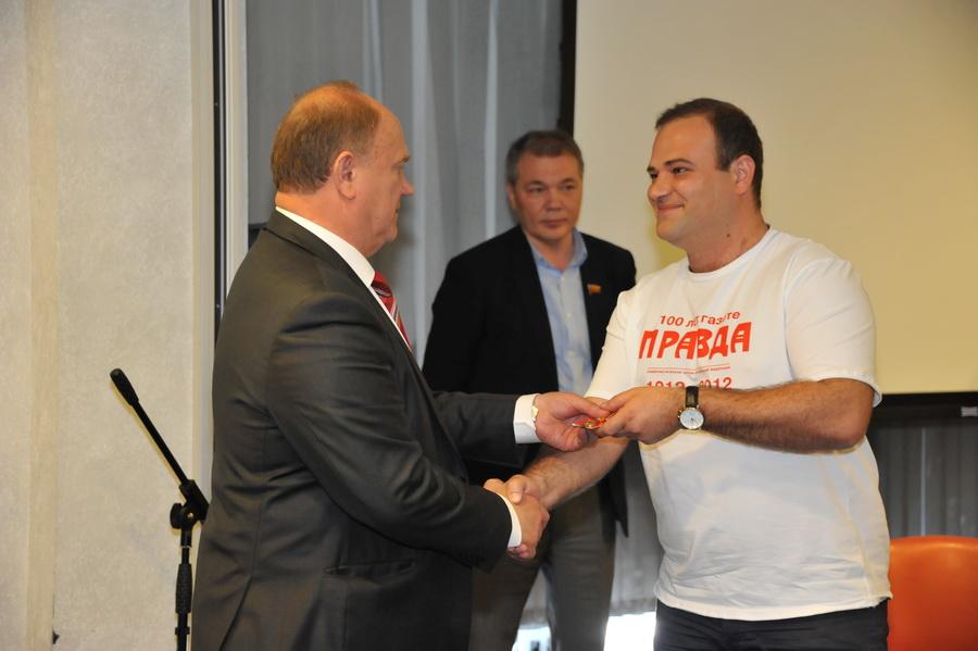 Геннадий Андреевич отметил большой вклад партийной печати в наше общее дело. Он поблагодарил участников «круглого стола» и семинара-совещания за их беззаветную преданность делу партии и добросовестный труд. За заслуги перед международным коммунистическим движением ряд иностранных журналистов был награжден памятной медалью ЦК КПРФ «100-лет газете «Правда». Вручал эти награды Г.А. Зюганов.