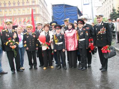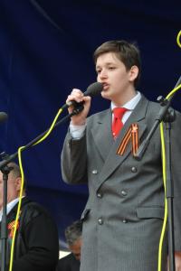 Ветеран локальных войн, подполковник А.Ю. Горпинко с трибуны заявил, что он принял эстафету у героических участников Великой Отечественной войны. Он напомнил, что наш народ, начиная с Александра Невского, всегда сражался под красными знаменами. «Час мужества пробил на наших часах, и мужество нас не покинет!», - этими стихами завершил свое выступление подполковник.