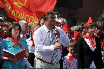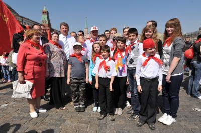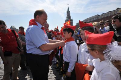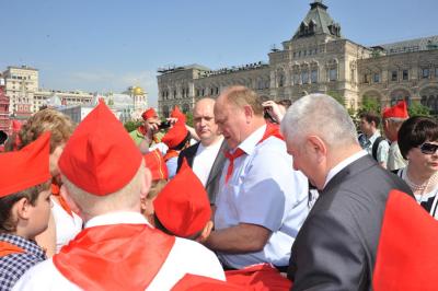Первый секретарь Московского обкома КПРФ Н.И. Васильев передал поздравления с праздником от имени коммунистов Подмосковья. Он напомнил, что торжественный прием в пионеры на Красной площади проходит уже в 14-й раз.