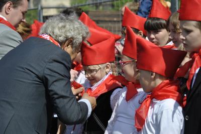 Юных пионеров поздравил заместитель Председателя ЦК КПРФ В.И. Кашин. «Пусть вам этот день запомнится на всю жизнь!» - сказал Владимир Иванович. Он также призвал ребят быть достойными принятой сегодня пионерской клятвы.