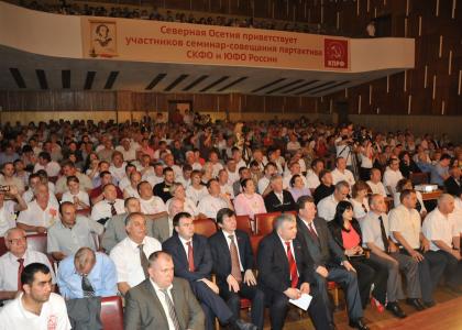 Секретарь ЦК КПРФ, первый секретарь Северо-Осетинского рескома КПРФ К.К. Тайсаев представил участников семинара-совещания. На форум прибыли делегации из 13 регионов юга России, а также многочисленные гости. Среди них Казбек Куцукович, как первый заместитель Председателя Совета СКП КПСС, особо отметил делегации братских компартий, в частности, из Грузии и Приднестровья.