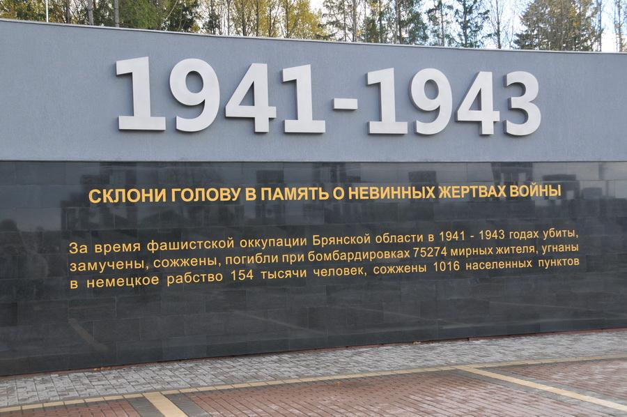 Днем Геннадий Андреевич посетил мемориальный комплекс «Хацунь». Здесь 25 октября 1941 года фашисты расстреляли 318 жителей деревни Хацунь, окрестных сел и беженцев из города Брянска. Всего же за годы немецкой оккупации Брянская область потеряла 75 274 мирных жителя, 154 тысячи были угнаны в рабство. Фашисты сожгли 1016 населенных пунктов.