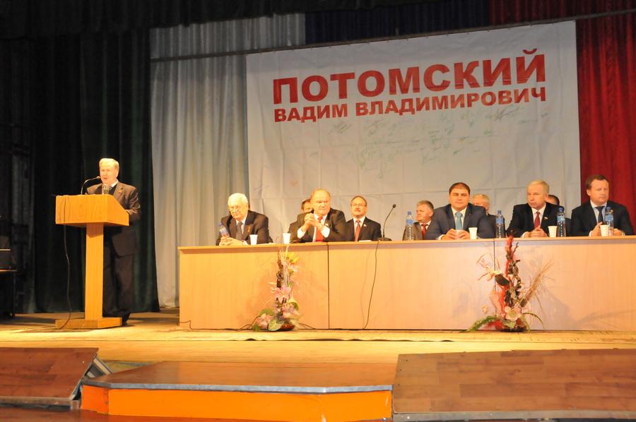 Затем лидер КПРФ представил кандидата от Компартии и Народно-патриотических сил на выборах губернатора Брянской области Вадима Потомского. «У вас есть все для достойной жизни, - подчеркнул Геннадий Андреевич, - но свертываются одно за другим производства, а молодежь бежит неизвестно куда. Голосуя за Потомского, вы поддерживаете нашу программу в области образования, основанную на традициях русской и советской классической школы».