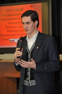 На большом экране демонстрировался документальный фильм, рассказывающий о работе московских комсомольцев. Их лидер Владимир Обуховский рассказал, что сегодня в организации насчитывается около 300 человек. В Москве действуют 25 местных отделений ЛКСМ. За последний год в организацию было принято 60 человек, создано три местных отделения.