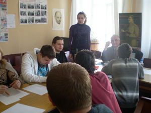 Григорий Николаевич рассказал молодёжи о том, как в октябре 1917 года народ выбрал свой путь. Вся власть перешла к Всероссийскому съезду Советов рабочих, крестьянских, солдатских и батрацких депутатов.