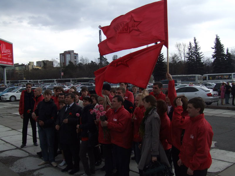 Участники слёта-семинара секретарей комсомольских организаций посетили площадь Революции, возложили красные гвоздики к подножью памятника В. И. Ленину.Вместе со всеми был первый секретарь крайкома партии П. П. МЕДВЕДЕВ.