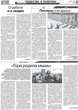 Публикуются и другие материалы о проблемах социально-экономической и политической жизни региона, письма читателей.