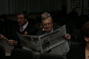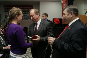 По доброй традиции она открылась торжественным событием: группе молодых коммунистов член Президиума ЦК КПРФ, секретарь ЦК КПРФ В.Ф. РАШКИН и первый секретарь крайкома партии П.П. МЕДВЕДЕВ вручили партийные билеты.