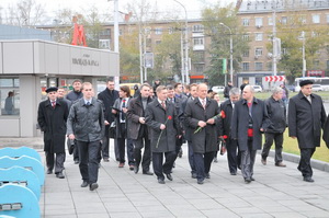 Затем Г.А. Зюганов и сопровождающие его депутаты-коммунисты Государственной Думы возложили цветы к памятнику В.И. Ленину в центре Новосибирска. После чего участники акции направились к другому памятнику – легендарному асу, трижды Герою Советского Союза Александру Ивановичу Покрышкину, почетному гражданину Новосибирска. Причем расстояние, отделяющее один памятник от другого, Геннадий Андреевич преодолел на метро. Он проехал от станции «Площадь Ленина» до станции «Площадь Маркса», в неформальной обстановке общаясь с новосибирцами. Это общение вызвало живой отклик у жителей города.