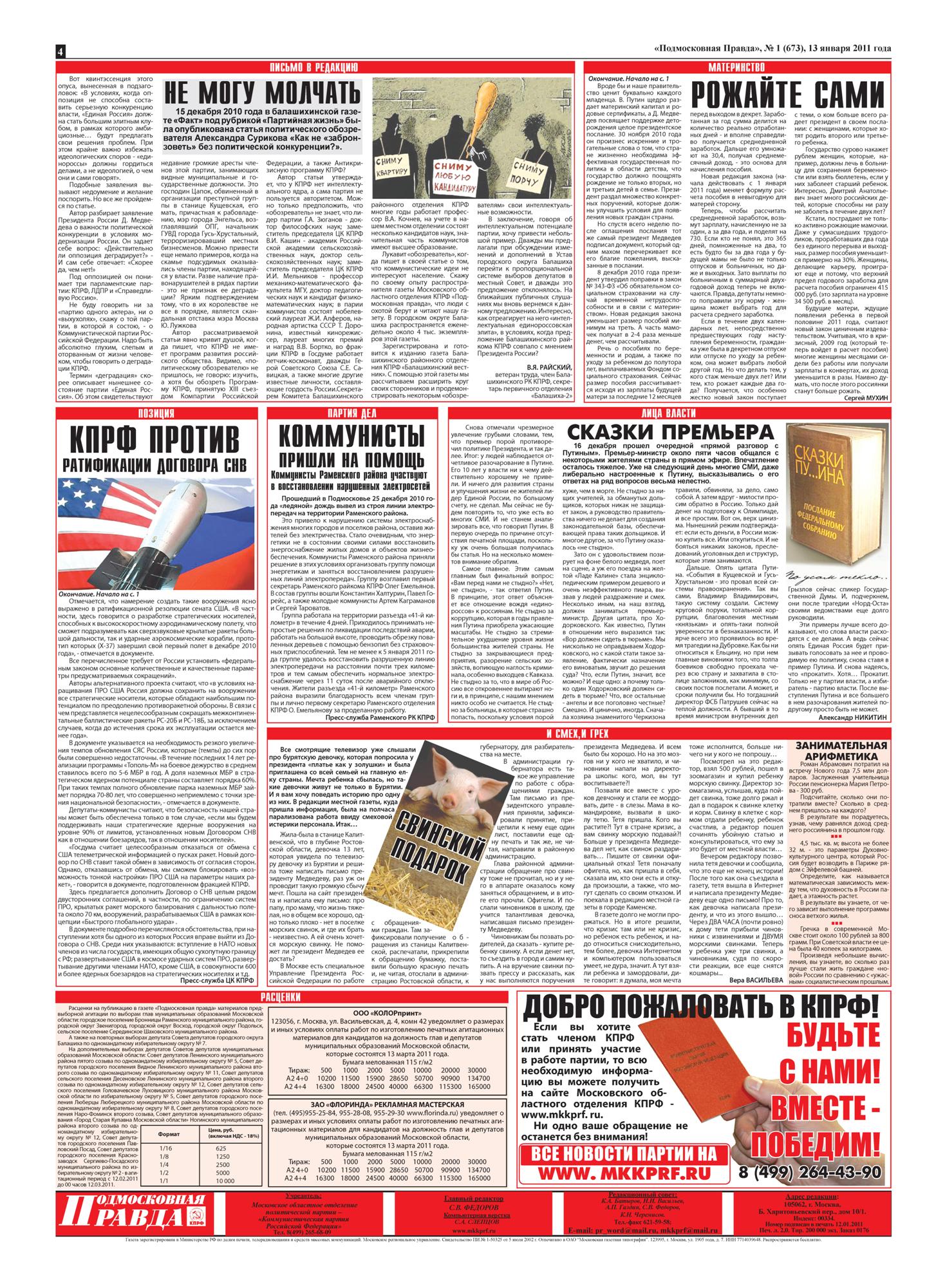 Вышел в свет первый в этом году номер газеты коммунистов Московской области «Подмосковная правда». Основные темы номера: