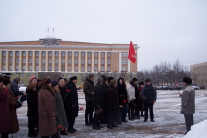 А в районном центре – городе Чудово, до памятника Ленину, стоящего в самом центре и тоже у здания администрации, было не добраться. Это увидел секретарь райкома Евгений Чубчиков, пришедший к месту акции пораньше, едва рассвело. Об акции было заявлено заранее, поэтому он обратился с требованием в администрацию и соответствующие службы, чтобы приняли меры. Свободной снегоуборочной техники не оказалось, но рабочие лопатами в течение часа прокопали тропинку до памятника Ленину. По ней и прошли коммунисты к постаменту, возложили цветы, отдав дань благодарной памяти великому человеку.