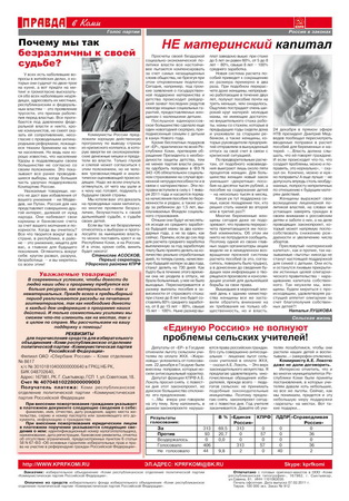 Опубликованы статьи, разоблачающие лицемерную политику властей в отношении пособий для матерей и детей, остро критикующие позицию депутатов «Единой России», отменивших в Госдуме льготу сельским учителям по оплате ЖКХ, другие злободневные материалы.